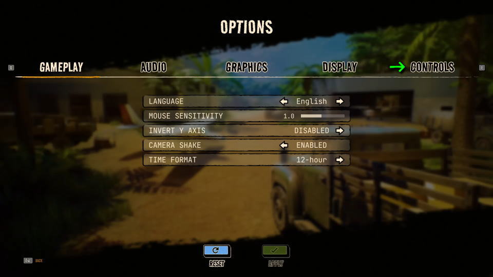 Airport Contrabandの操作を確認するには、前述したOPTIONSから「CONTROLS」に進みます。
