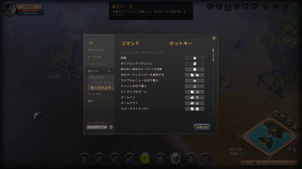 アルビオン・オンラインの「コントローラー設定」です。
