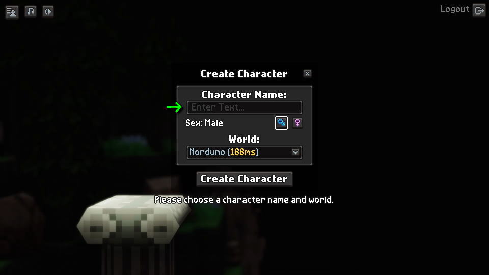 Apogeaに初めてログインしたら、あなたの分身となる「キャラクターの名前・性別・サーバ」を選択します。