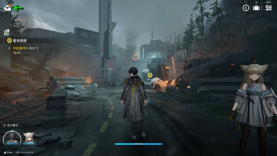 メールボックスが有効になるのは、ミッション「アンゲロスを倒す」を迎えて以降です。