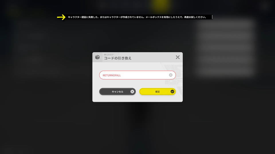 『キャラクター認証に失敗した、またはキャラクターが作成されていません。メールボックスを有効にしたうえで、再度お試しください』