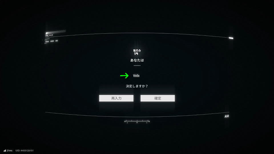 すると「プレイヤー名」を入力する欄が表示されますから、任意の名前を入れて「確定」します。