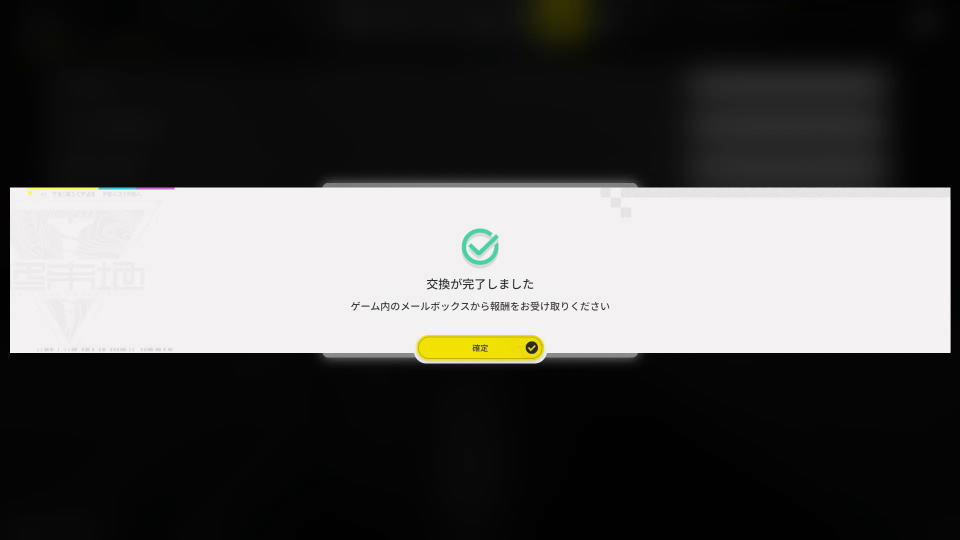 シリアルコードが無事認識されると『交換が完了しました。ゲーム内のメールボックスから報酬をお受け取りください』と表示されます。