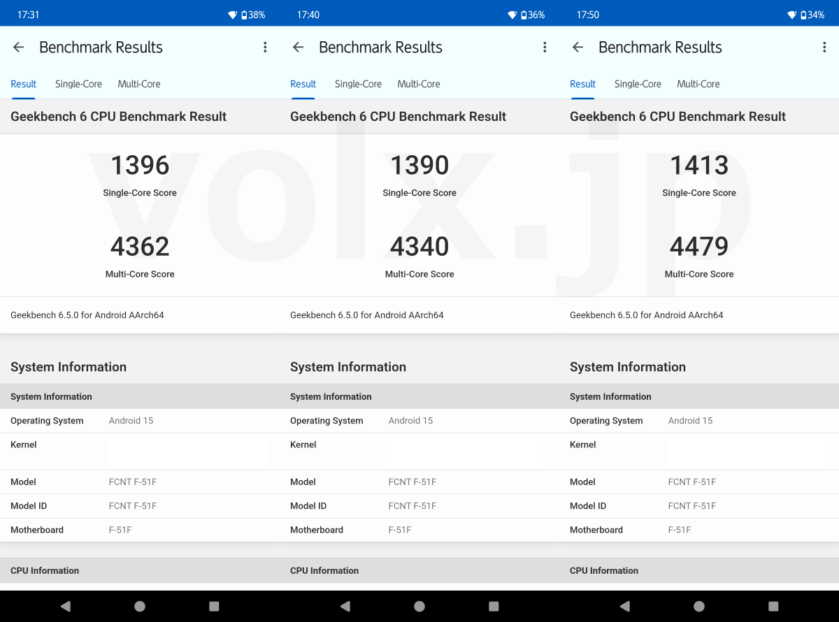 Storageを含めたAnTuTu benchmarkやGeekbench、3DMarkの計測データはリンク先をご確認ください。
