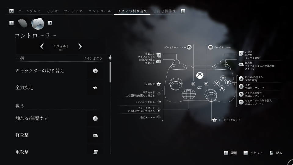 Banishers: Ghosts of New Edenの「コントローラー設定」です。
