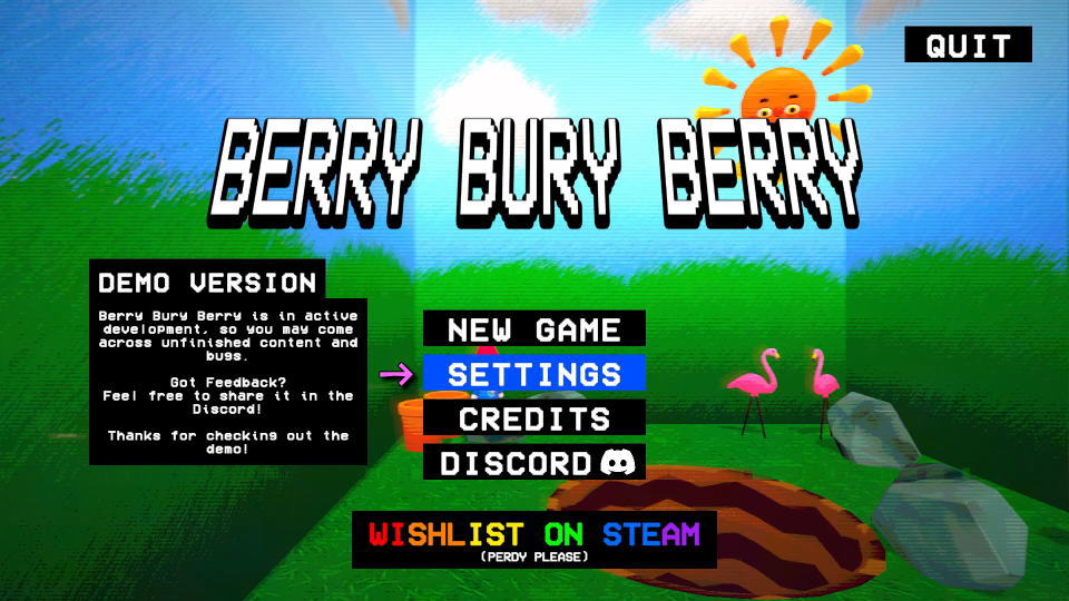 Berry Bury Berryの操作を確認するには、タイトルメニューから「SETTINGS」に進みます。