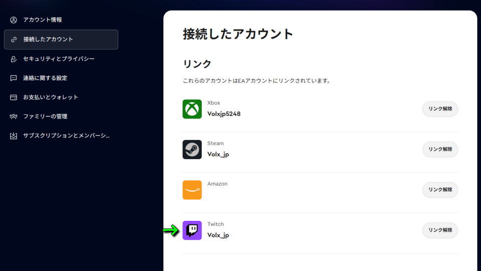 『リンク済み』になってない場合はそのボタンから、または「Account Management」で連携します。