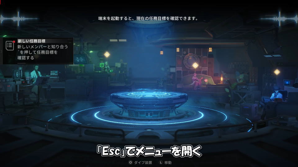 ロビーであるこの画面が表示されたら「Esc」でメニューを開きます。