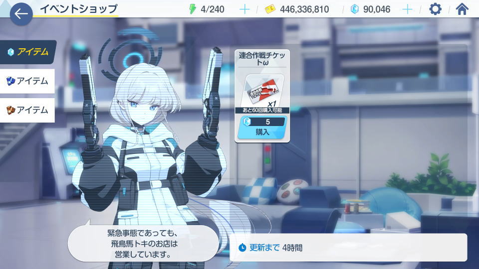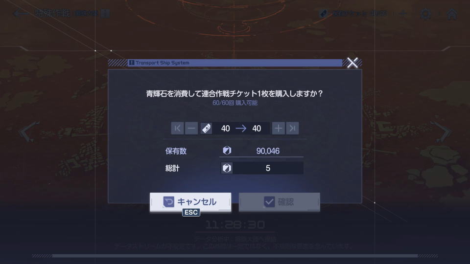 - 連合作戦チケットωは「青輝石」と引き換えに、1日最大60枚まで購入できる