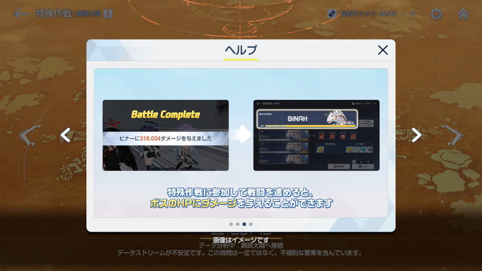 - ボスとの戦闘には、難易度に応じた「連合作戦チケットω」が必要となる