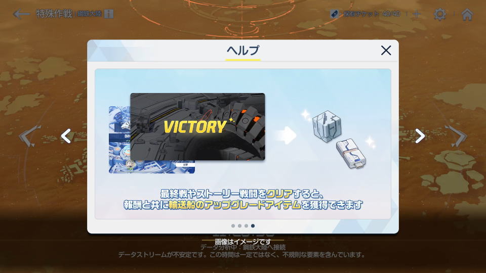 最終戦やストーリー戦闘をクリアすることで、報酬とともに輸送船のアップグレードアイテムも得られます。