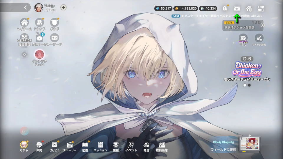 享楽探求者をアンロックしたら、ロビー右上にある「ポスト」を開きます。