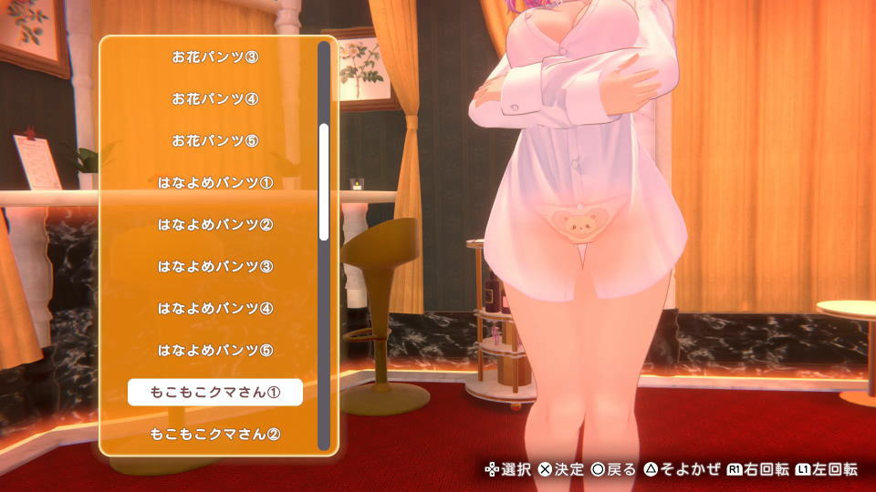 ゲーム中にプレゼントした追加のパンツを含め、デザインとカラーを指定できます。