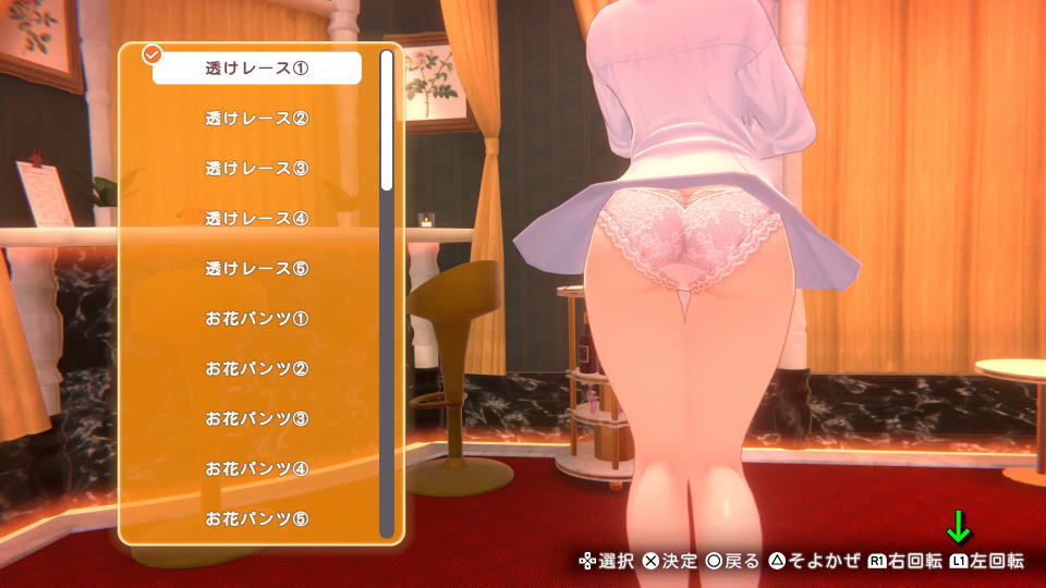 フィッティングルームでは、衣装・下着・ストッキングを任意の組み合わせで「固定」できます。