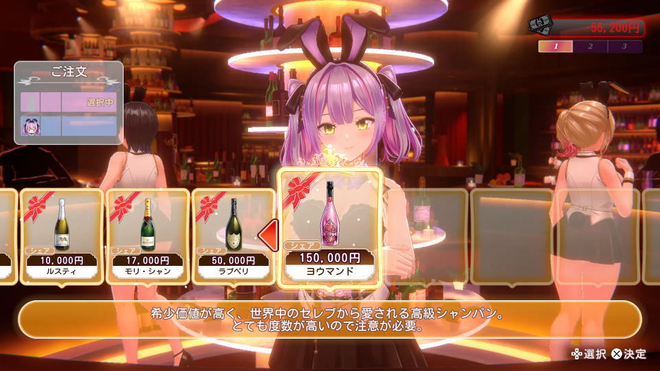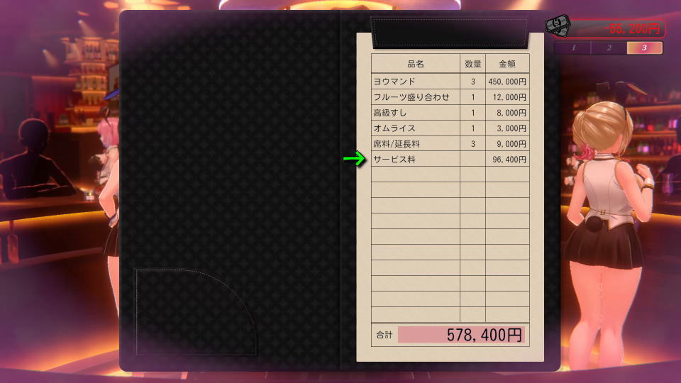 ギャンブルやキャストへのプレゼント、店へのツケなどで大量の所持金がすぐ消えていくバニーガーデン2。
