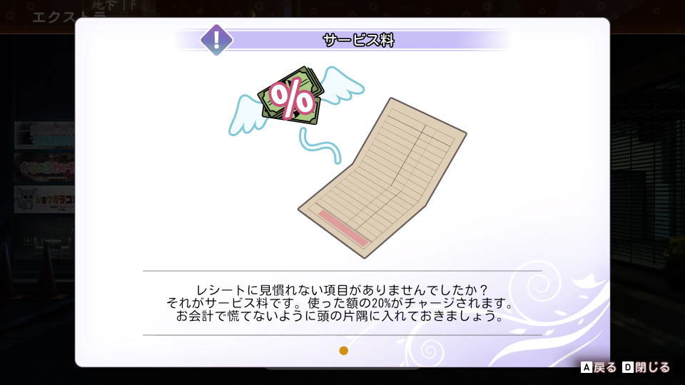 『レシートに見慣れない項目がありませんでしたか?それがサービス料です。使った額の20%がチャージされます。お会計で慌てないように頭の片隅に入れておきましょう』
