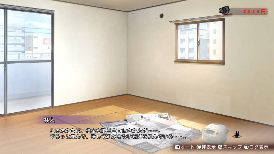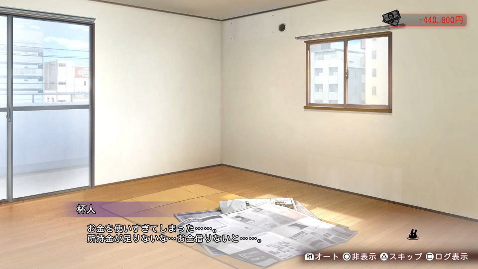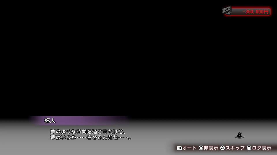 また借金状態を維持していると、杯人が所持金を心配し始めます。