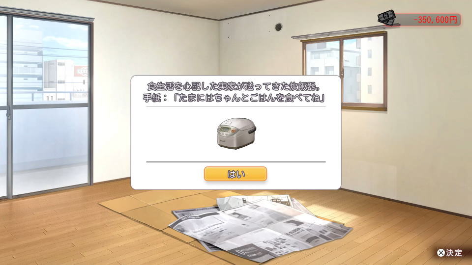 ゲームを進行させていると、杯人の環境を心配した実家から商品が届くことがあります。