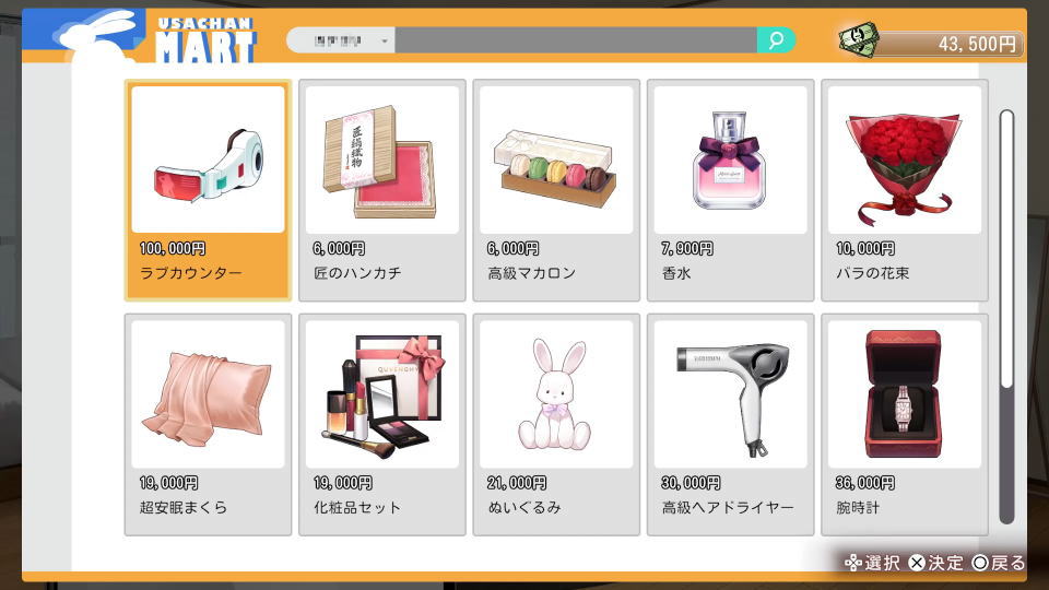 ラブカウンターを購入すると、バニーガーデンの入店中に画面上部へ「好感度」が表示されます。