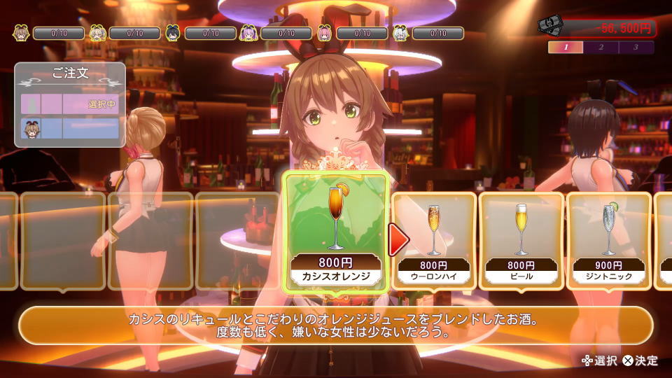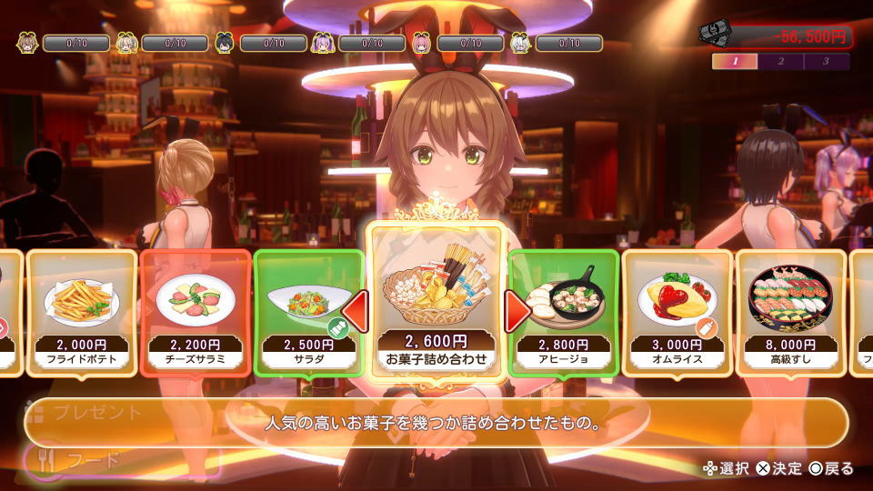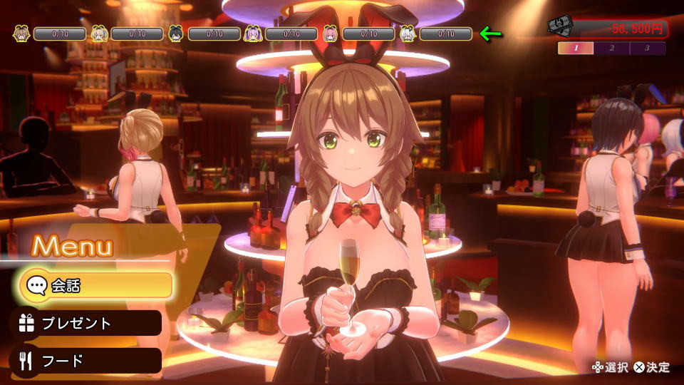 各キャストの好感度は、好みのドリンク・フード・プレゼントなどを渡すことで上昇していきます。