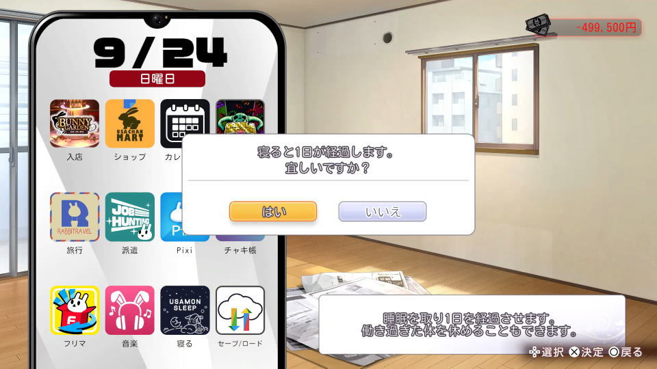 - 9月24日に数万円の予算ができたら、セーブしてエンディング分岐に進む