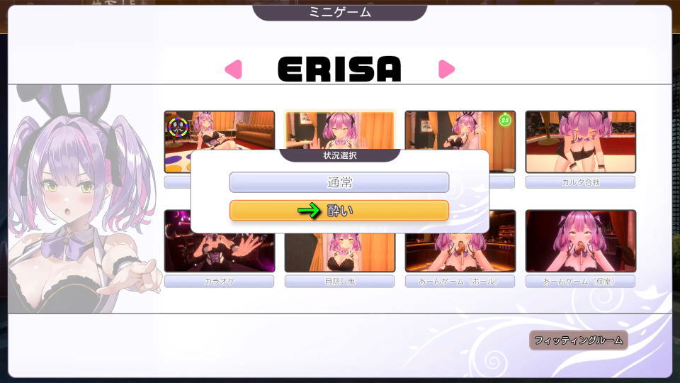 先程ゲーム内で設定した下着が全裸に反映されたまま、各種ミニゲームがプレイできます。
