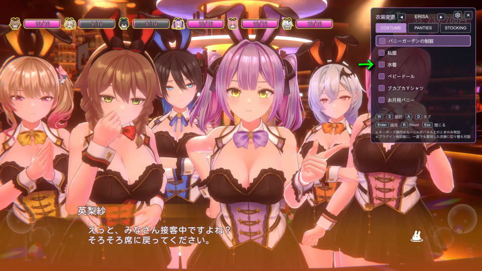 今回の記事ではこのバニーガーデン2で、日本の風情が感じられるパンイチで接客させる方法を解説します。