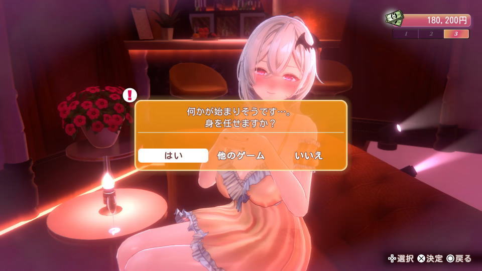 個室に招待されても基本的な流れは変わらず、より良いエンディングに向けて好感度を高めていきます。