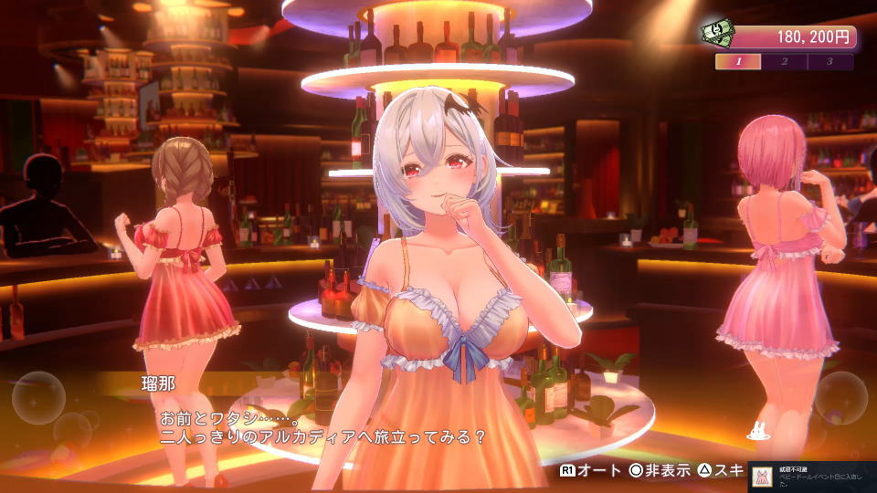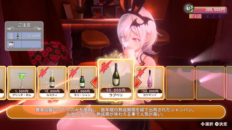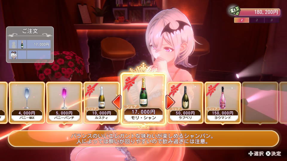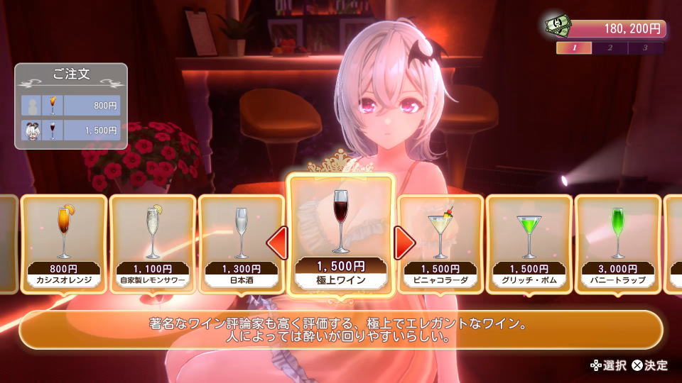 ボトルではない注文の場合、キャストは前作のように向かいの棚にドリンクを取りに行きます。