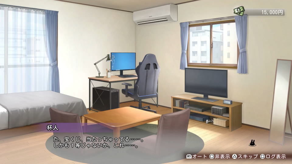 職場での重大なミスにより職を失い、すべてに絶望していた杯人が宝くじに当選してしまう成金モード。