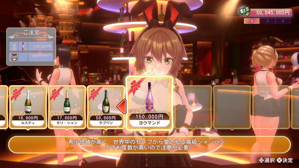 高価なドリンクは度数が高いため、1日目からキャストを酔わせることができます。