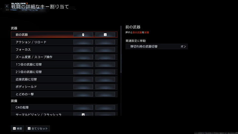 分類 | 戦闘の詳細なキー割り当て | キー割り当て |