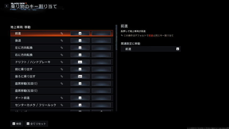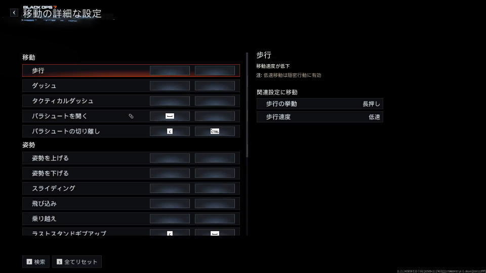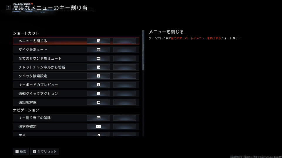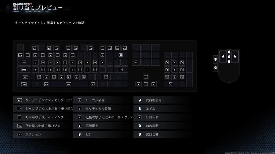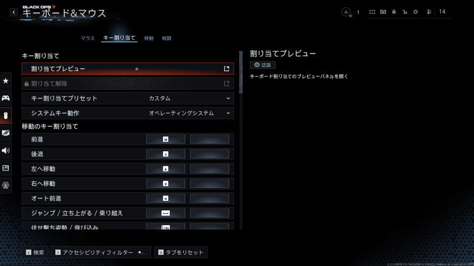 Call of Duty: Black Ops 7の「キーボード設定」です。