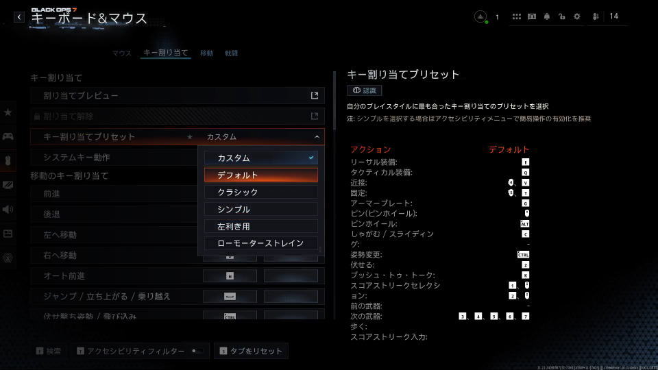 Call of Duty: Black Ops 7には「全6種類」のキー割り当てプリセットがあります。