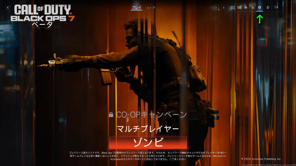 Call of Duty: Black Ops 7の操作を確認するには、タイトルメニュー右上にある「メニュー」に進みます。