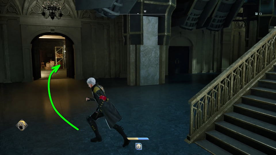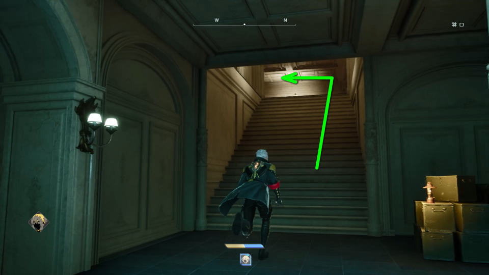 通路に入ったら突き当りの階段を降りずに、右に曲がって階段を上がります。
