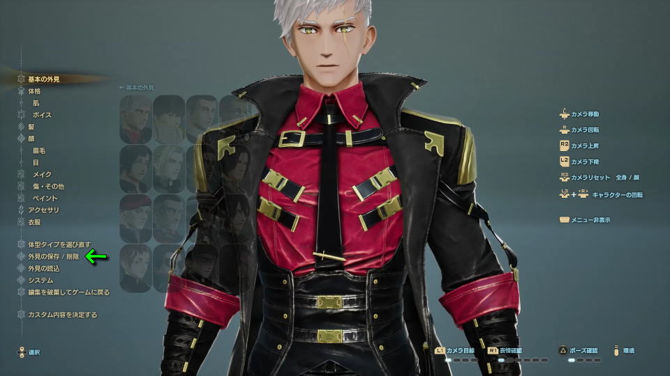 カスタマイズの結果、満足できるキャラクターが完成したら「外見の保存 / 削除」を選択します。