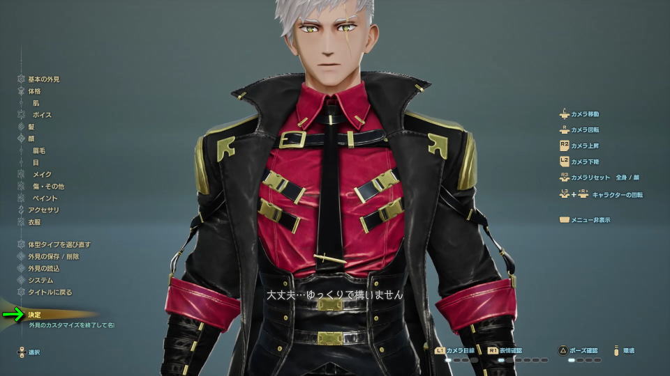 性別を確定させたら「基本の外見」以下の項目を任意でカスタマイズして「決定」を選択します。