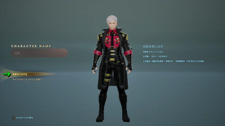 入力可能な名前は1~16文字まで、かつ一部記号を除いた全角文字や半角英数字に対応しています。