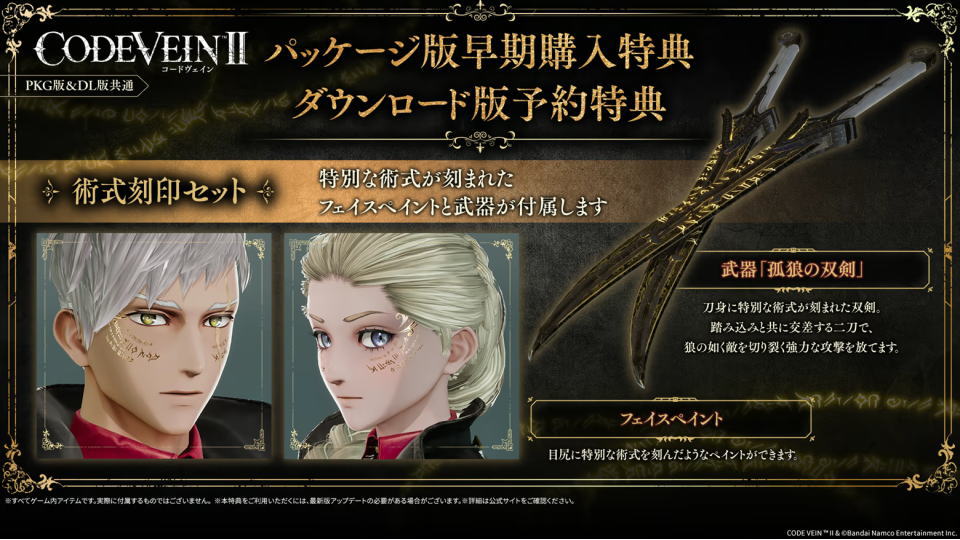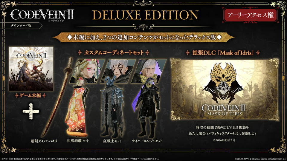 CODE VEIN II Deluxe Editionに同梱される「デラックスコンテンツセット」の内容です。