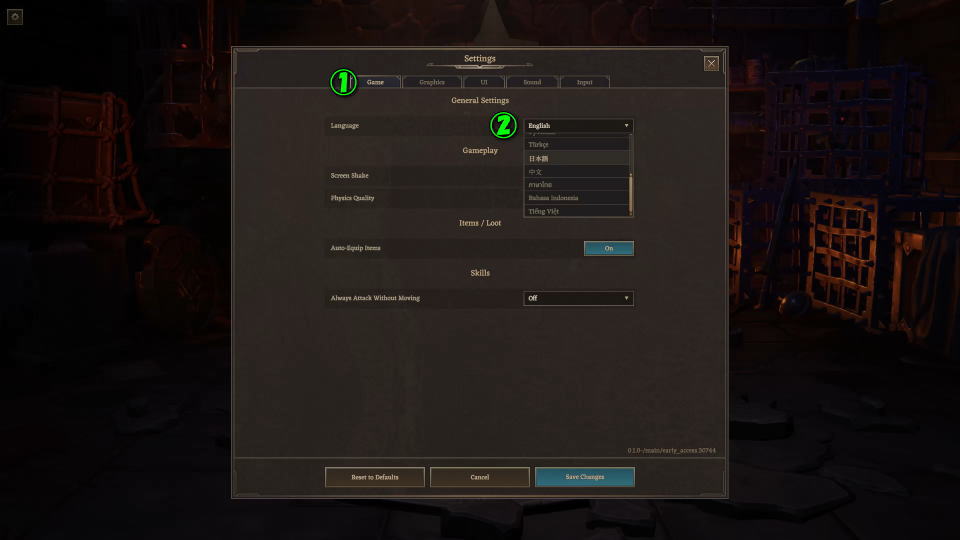 Settingsに移動したら「Game」から『Language』に進み、標準のEnglishから「日本語」に変更します。