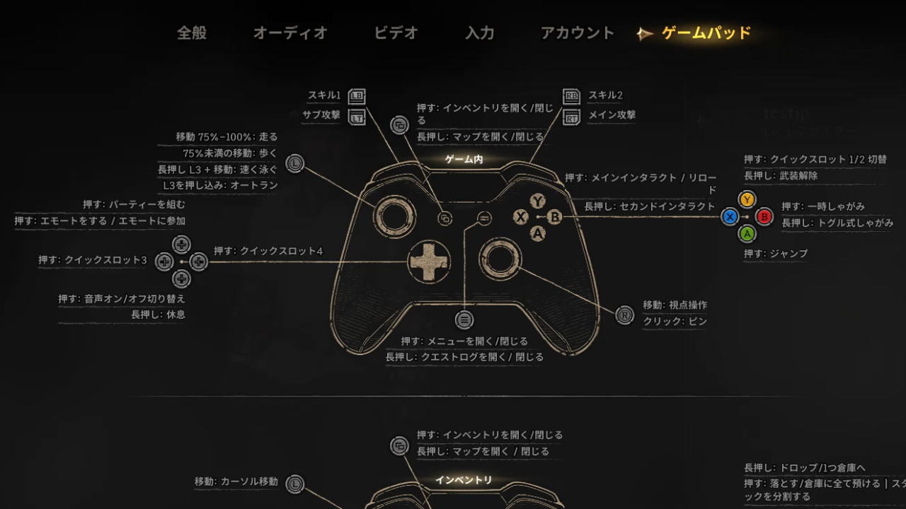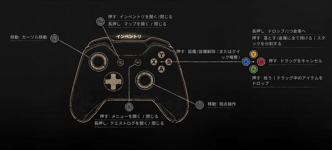 | インベントリを開く / 閉じる マップを開く / 閉じる(長押し) | ビュー | SHARE |