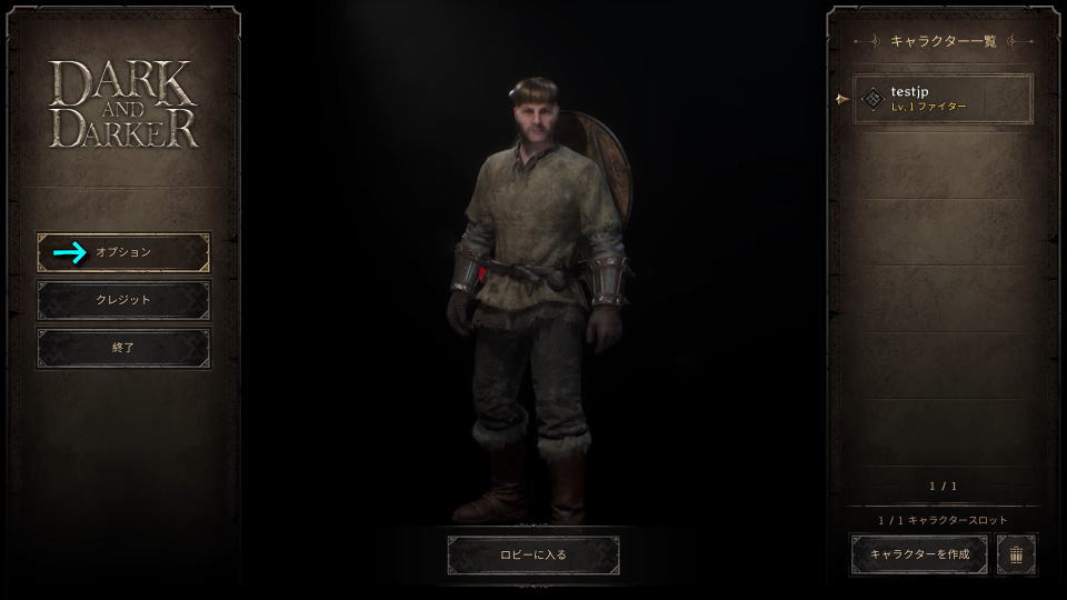 Dark and Darkerを日本語化するには、ゲームを開始して「キャラクターの作成」に進みます。