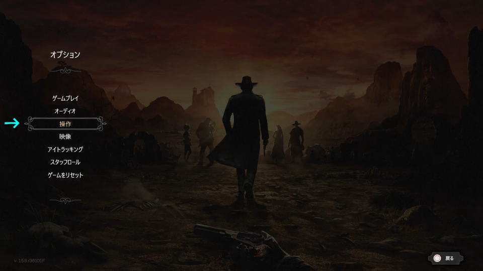 Desperados IIIの操作を確認するには、日本語化済みのタイトルメニューから「オプション」に進みます。
