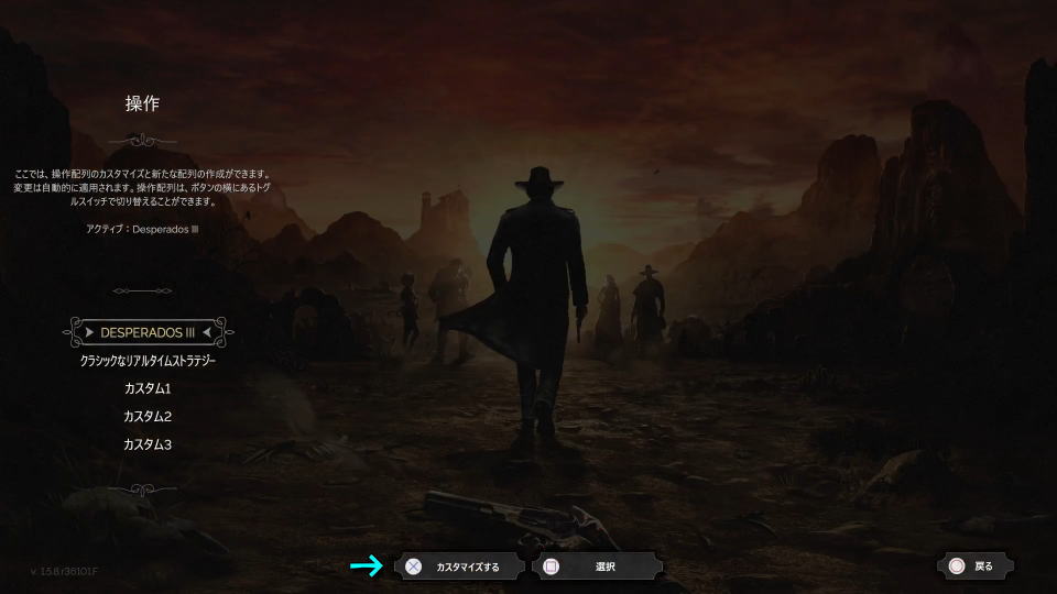 操作に移動したら、デフォルトの「DESPERADOS III」であることを確認して「カスタマイズする」です。