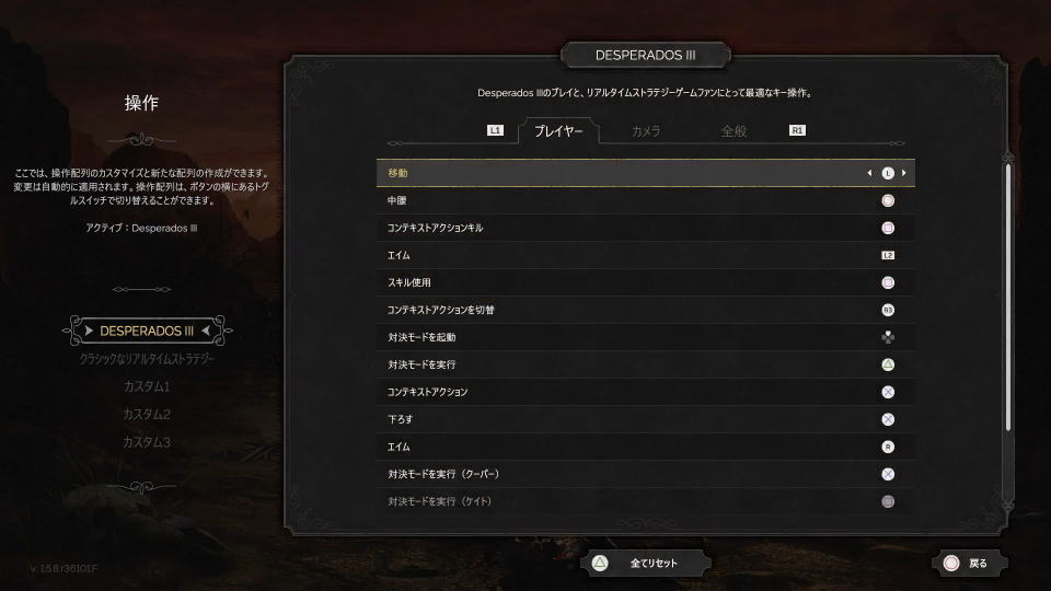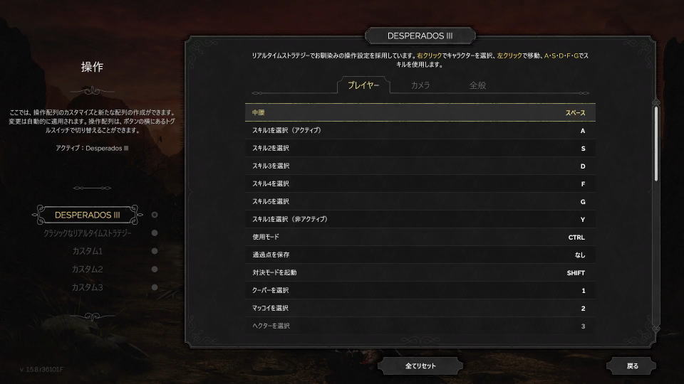 【Desperados III】キーボードとコントローラー設定【操作方法】
