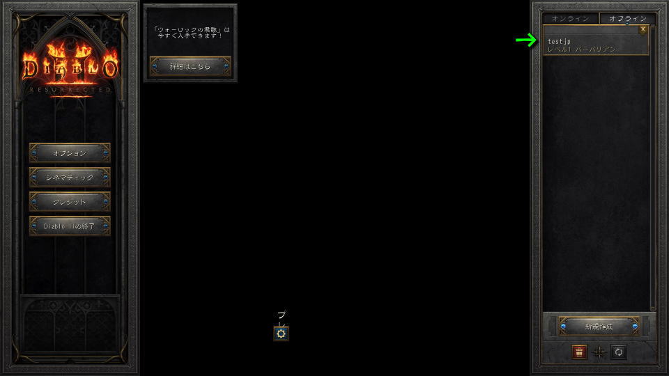 ディアブロ II リザレクテッドの操作を確認するには、キャラクターを作成してゲームを開始します。