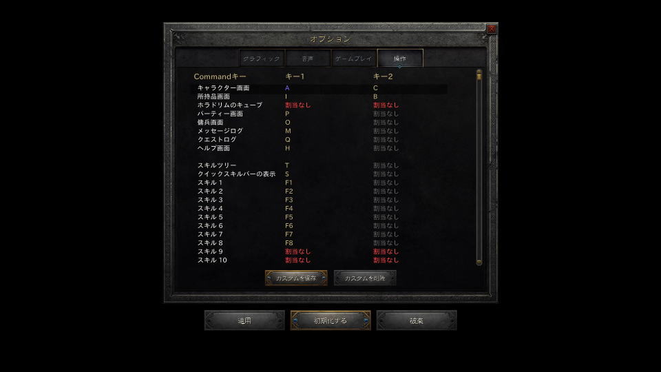 ディアブロ II リザレクテッドの「キーボード設定」です。