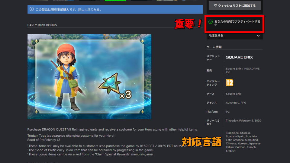 または直接「ドラゴンクエストVII Reimagined」の商品ページにアクセスします。