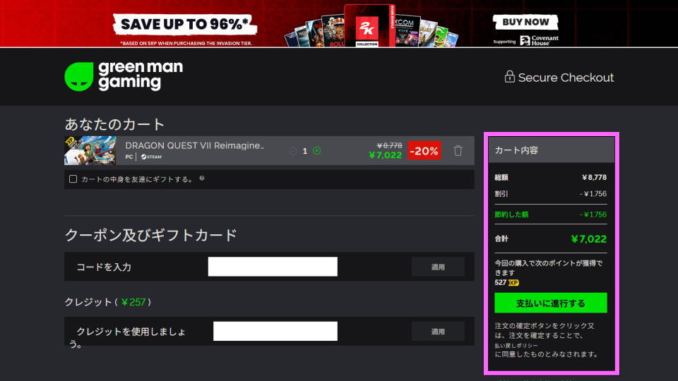 ドラゴンクエストVII Reimaginedを安く購入するには、まず「Green Man Gaming」にアクセスします。